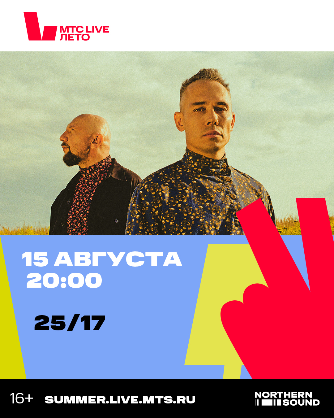 15 августа на МТС Live Лето при поддержке агентства Northern Sound в Лужниках группа 25/17 выступит под открытым небом с музыкальной программой, куда войдут все легендарные треки группы!
